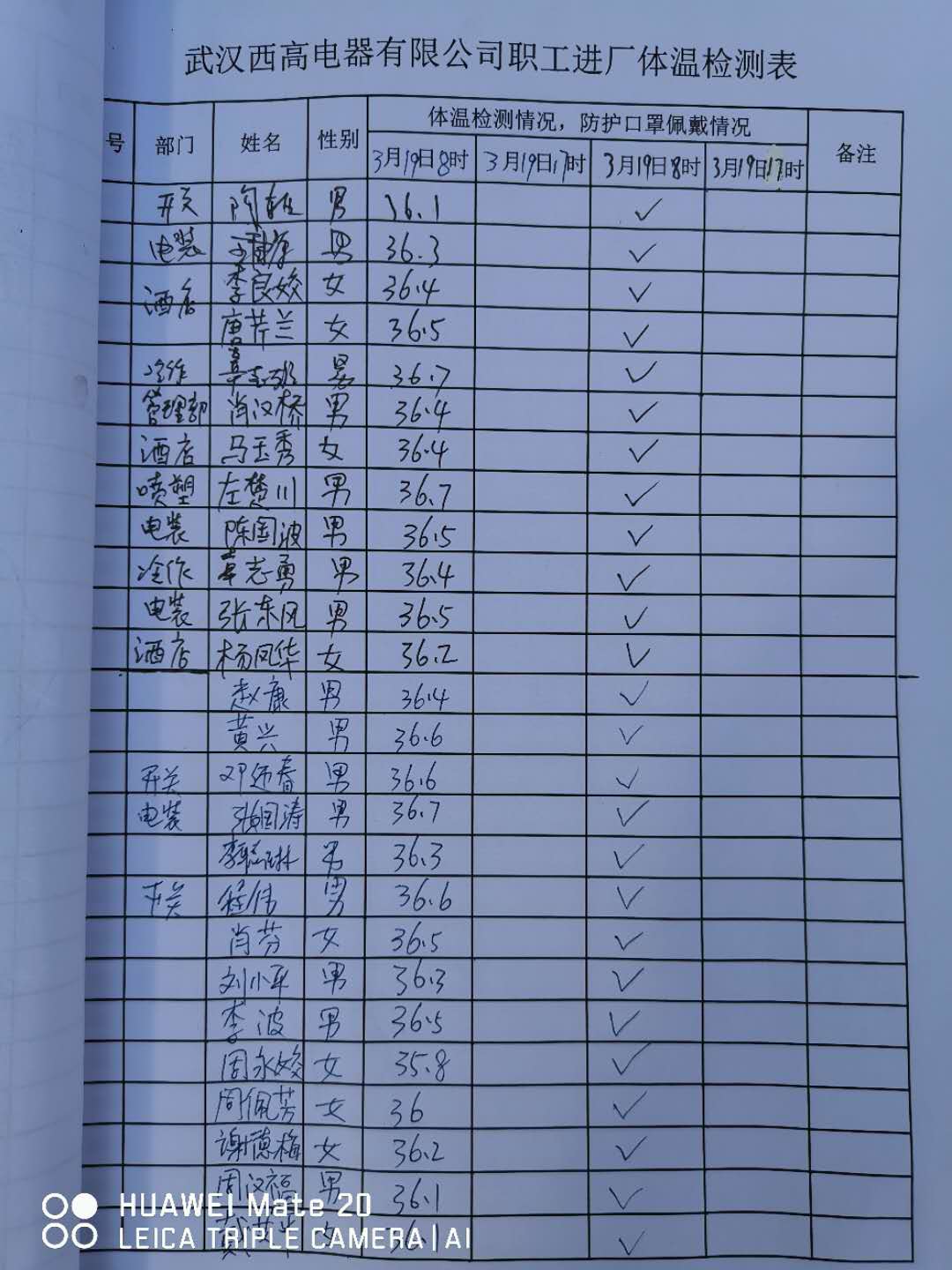 黨員同志在做好自身防護(hù)的同時(shí),不定時(shí)不定期對復(fù)工期間其他員工的防控工作進(jìn)行抽查,做好記錄備檔工作。