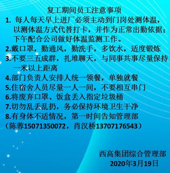 為深入貫徹落實(shí)總書記關(guān)于堅(jiān)決打贏疫情防控阻擊戰(zhàn)的重要指示精神,全面落實(shí)黨中央、國務(wù)院和省委、省政府、漢陽區(qū)政府關(guān)于疫情防控工作的決策部署,切實(shí)做好疫情防控期間企業(yè)復(fù)工復(fù)產(chǎn)工作,在中共武漢西高電器有限公司支部委員會(huì)書記周雄同志的帶領(lǐng)下, 武漢西高電器有限公司主要從以下幾方面開展防控工作: